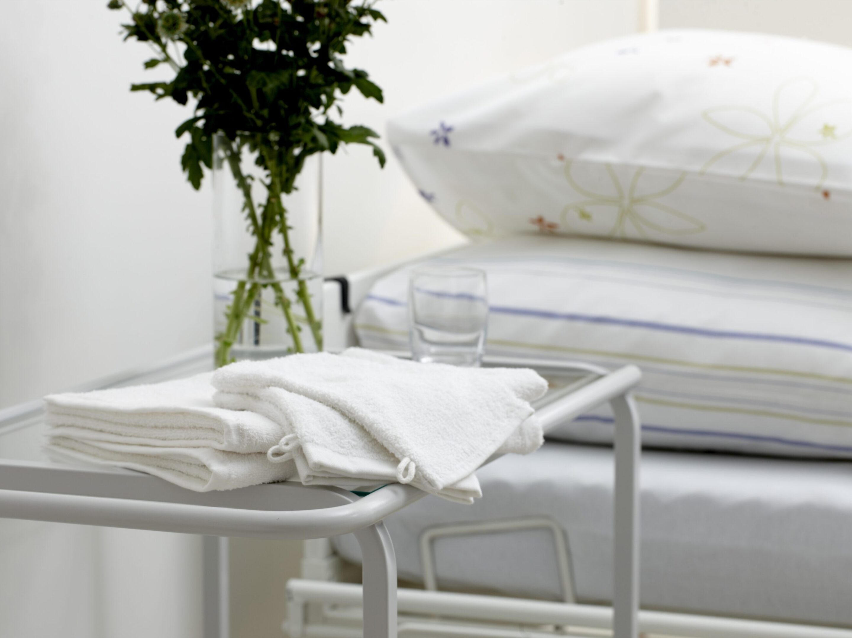 Notre assortiment de linge comprend du linge de lit, du linge de bain et des alèses propres et hygiéniquement certifiés. Parfaitement entretenu et parfaitement pris en charge !